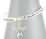 Beautiful Inspirational "Daughters Blessing" Angel Charm Bangle Bracelet ~ Silver Tone on a Message Gift Card and FREE Bookmarker! Overview